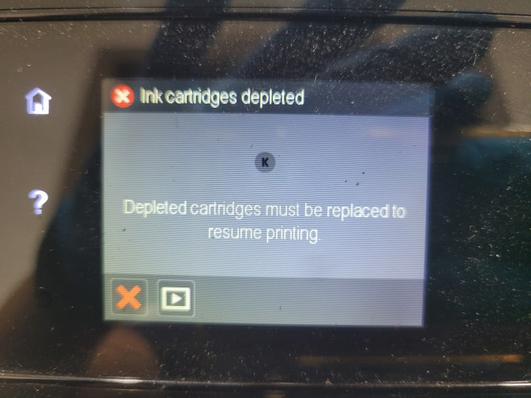 ● Ink cartridges depleted (잉크 카트리지 소모됨)