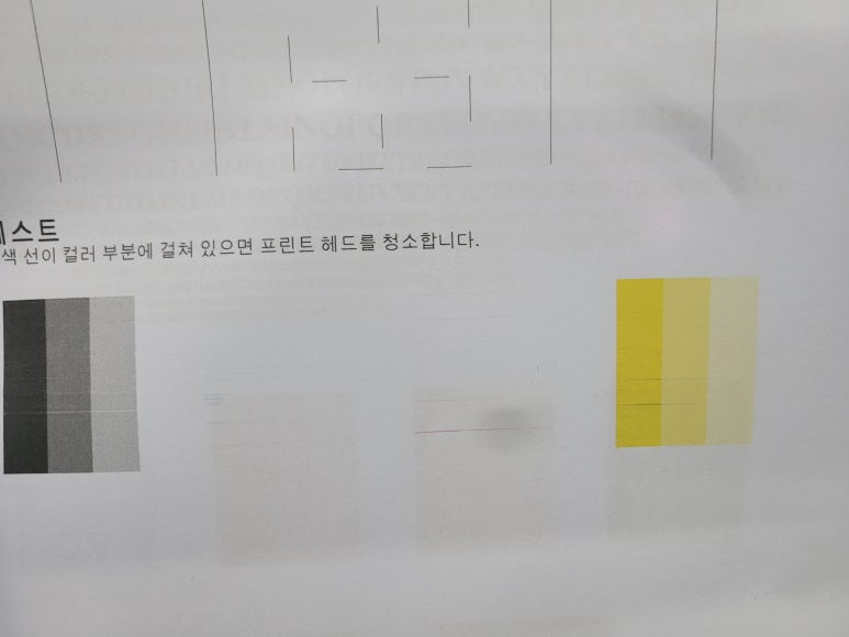 ⚠ 이상 시에만, 액정에서 설정 ➡ 유지 및 보수 ➡ 헤드청소 3단계 1회만 진행 (개선없다면 수리요청)