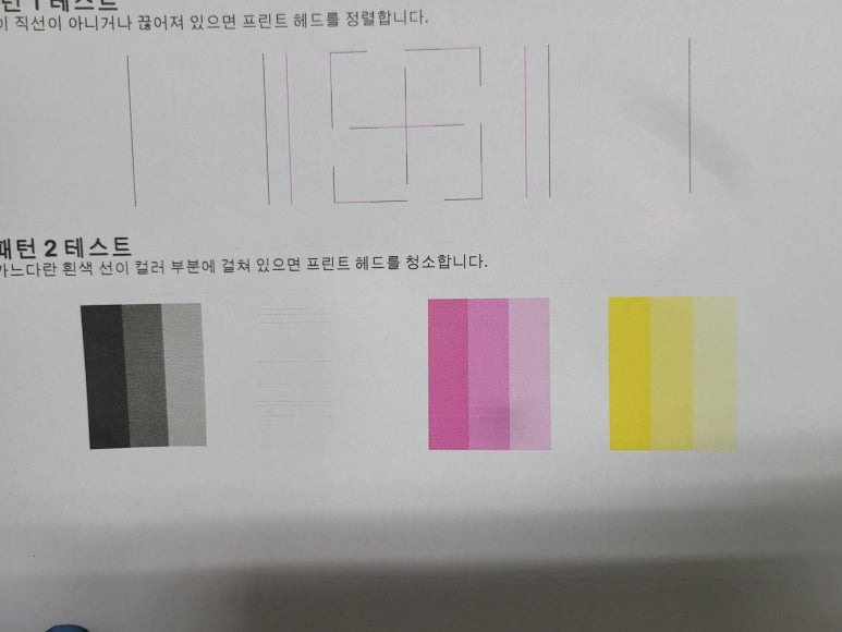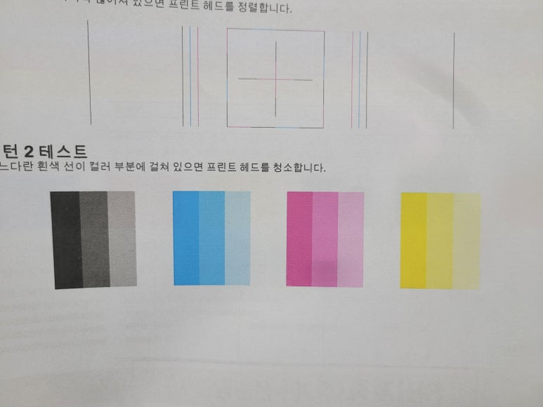 ⚠ 이상 시에만, 액정에서 설정 ➡ 유지 및 보수 ➡ 헤드청소 3단계 1회만 진행 (개선없다면 수리요청)