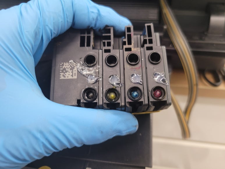 ● 프린터 헤드 챔버 터짐 탄성접착제 도포 및 테이핑