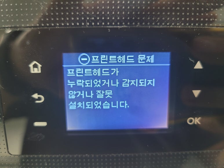 프린트헤드 신규 교체 및 카트리지 석션 잉크 차징, 호스재정리 수리 완료했습니다.