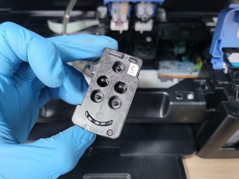 서울 마포구 소재 학원에서 출력이 불량하여 출장수리 요청하여 스케줄 잡아 이동, 수리 완료했습니다. 지나친 헤드/카트리지 노즐 청소, 정밀 청소, 시스템 청소 시에는 많은 잉크 소모와 함께 개선없이 폐잉크가 패드에 차 5B00에러가 날 수 있습니다.