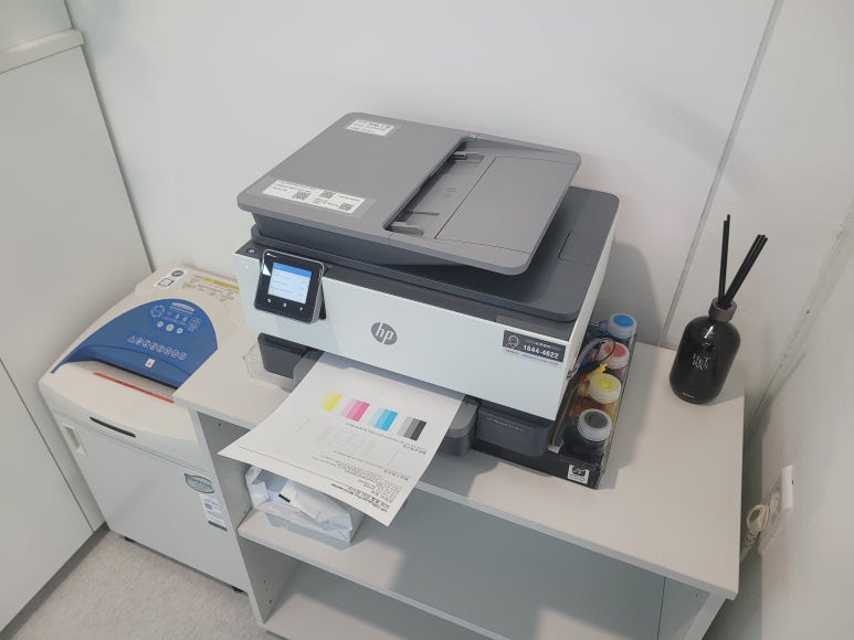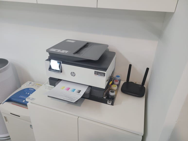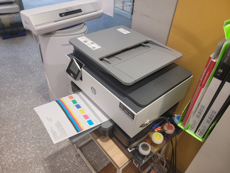 건축건설 플랜트 관련 사무실에서 도면 출력용으로 사용하는 HP DesignJet T120 24인치 플로터 A1 출력 대형 프린터 무한잉크인데 잉크 카트리지 소모됨으로 출장수리 요청하여 스케줄 잡아 방문 출장 수리를 완료했습니다. 출력불량 및 잉크 카트리지 문제로 빠른 전체 점검 필요 이유 : 1. 호스 내 잉크 경화로 잉크공급 不 2. 카트리지 부싱 및 패킹 노후로 공기유입으로 잉크공급 不 3. 헤드 內 잉크공간 챔버 터짐 (칩판부 슈팅에어라인 비닐탈락, PCB 오염) 4. 스테이션 펌핑모터 불량으로 인한 잉크공급 不 cf. 잦은 헤드 청소는 잉크손실, 내부오염, 헤드 노후화 및 칩판부 슈팅에어라인 비닐탈락, 챔버**터짐, 노즐 훼손, 헤드 챔버 내부 크랙 등 영향을 줍니다. 꾸준한 주기적인 4색 출..